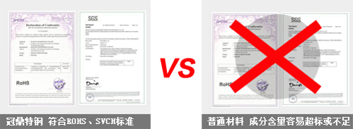 順為特鋼成份達標,符合ROHS、SVCH等相關標準。順為承諾:材質化驗成分不足或假貨,假一賠十。